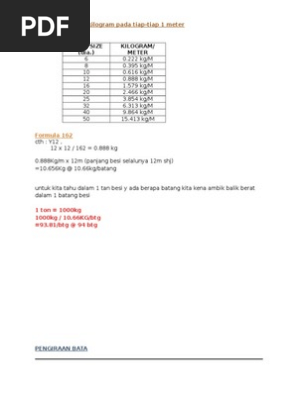 Mengira Berat Besi Dalam 1m3 Konkrit Ini Kaedah Cepat Apabila Ingin Membuat Anggaran Pukal Atau Lum Sum Bagi Kuantiti Besi Dalam 1m3 Konkrit 1m3 Sama Dengan Panjang X Lebar X Tinggi Merujuk